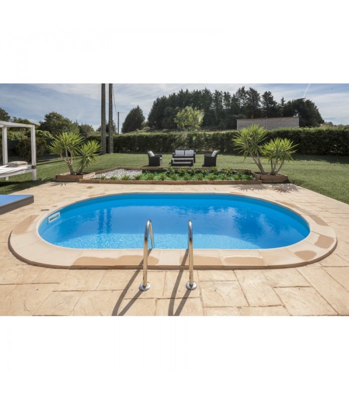 Con un diseño ovalado, la piscina Marbella es una piscina grande dentro de la familia de las pequeñas.