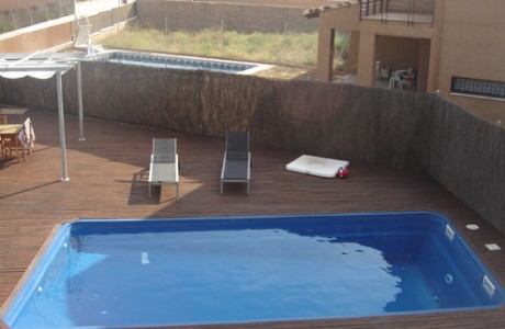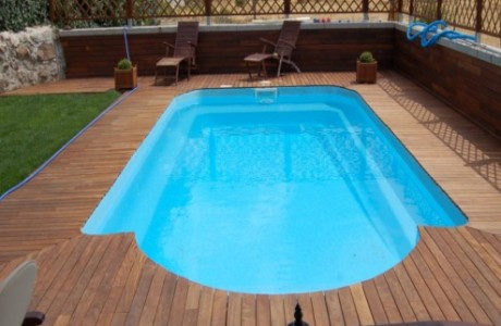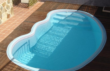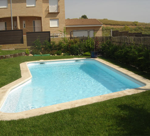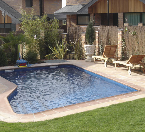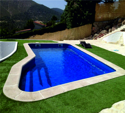 Mallorca 2. Algo más pequeña 8,50 metros por 4 metros. Mantiene el mismo diseño. Comienza con una profundidad de 1,00 metro en el cual van incorporados los escalones, hasta finalizar con una profundidad de 1.80 metros.