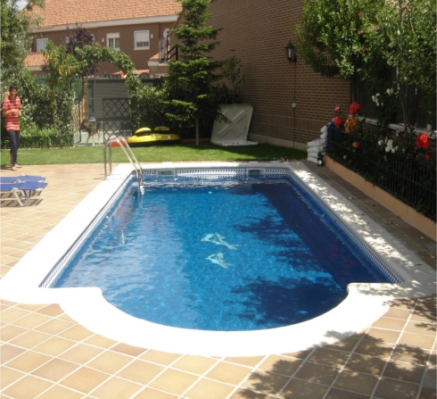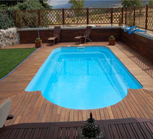 Premier B 3.80 x 9.00 metros, su profundidad comienza en los 1.00 metro, en el que van incorporados los escalones, hasta finalizar en el 1.80metros.
