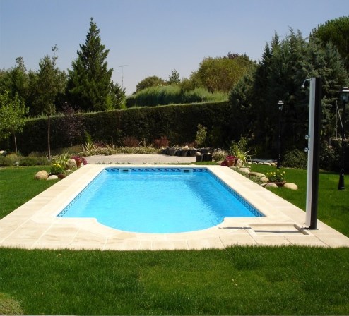 Premier 3 3.50 x 7.50 metros La más pequeña de este modelo, su profundidad comienza en los 0´90 metros, en el que van incorporados los escalones, hasta finalizar en el 1´70 metros.