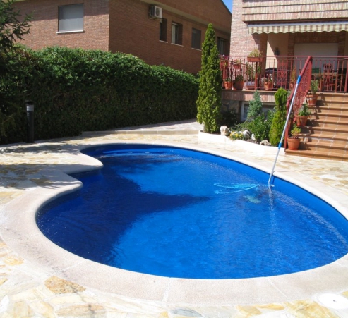 Stylo 8E tiene una profundidad variable de 1 metro a 1.70 metros, en la curva menor van incorporados los escalones. Su longitud es de 7.80 x 3.20 ó 3.80 metros de ancho.